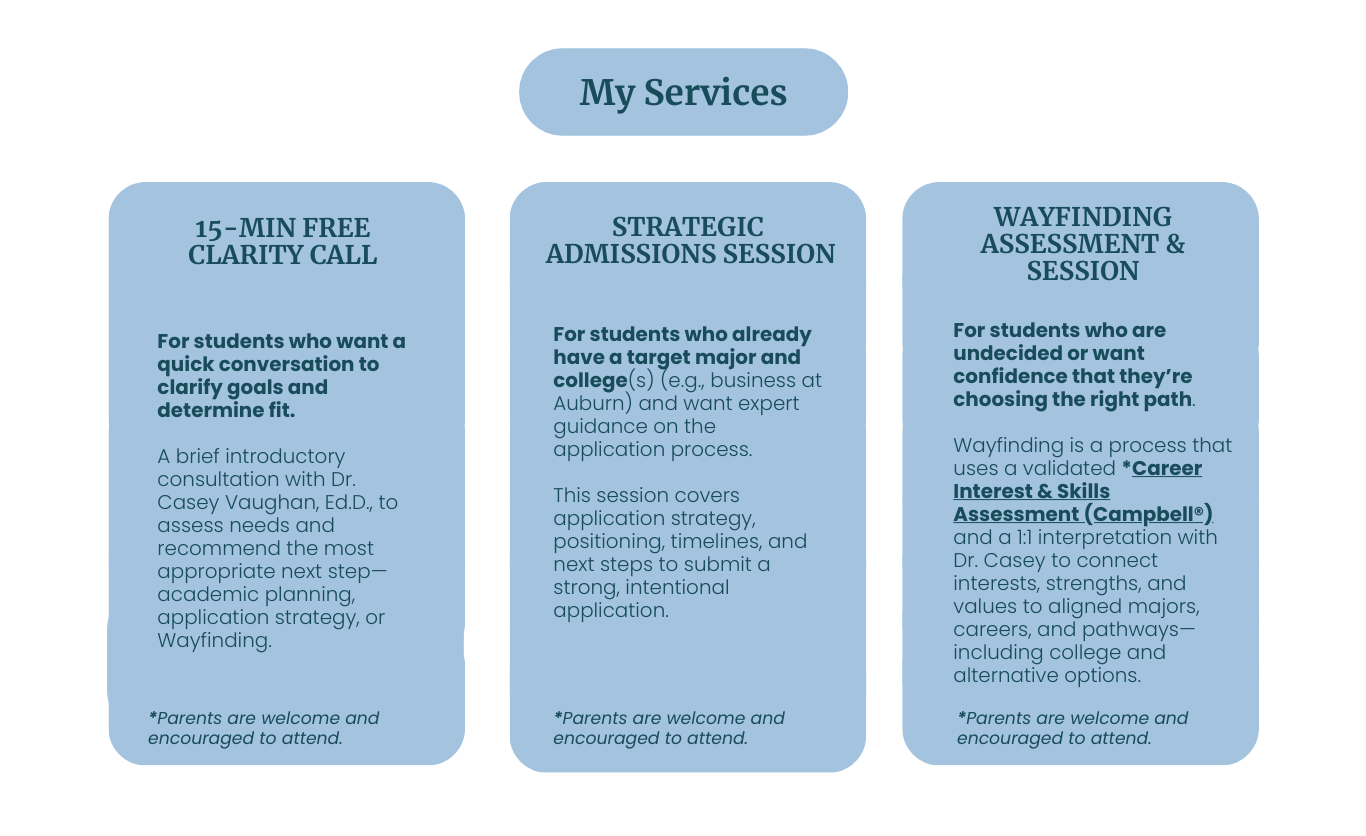 Advising Practice Designed for Students, from Early Career Exploration to Strategic College Admissions.